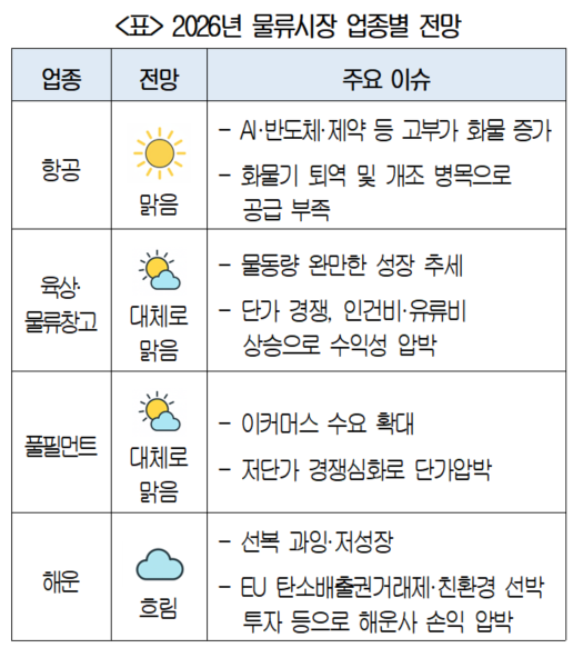 업종별 전망 : 항공 ‘맑음’, 육상·물류창고·풀필먼트 ‘대체로 맑음’, 해운 ‘흐림’